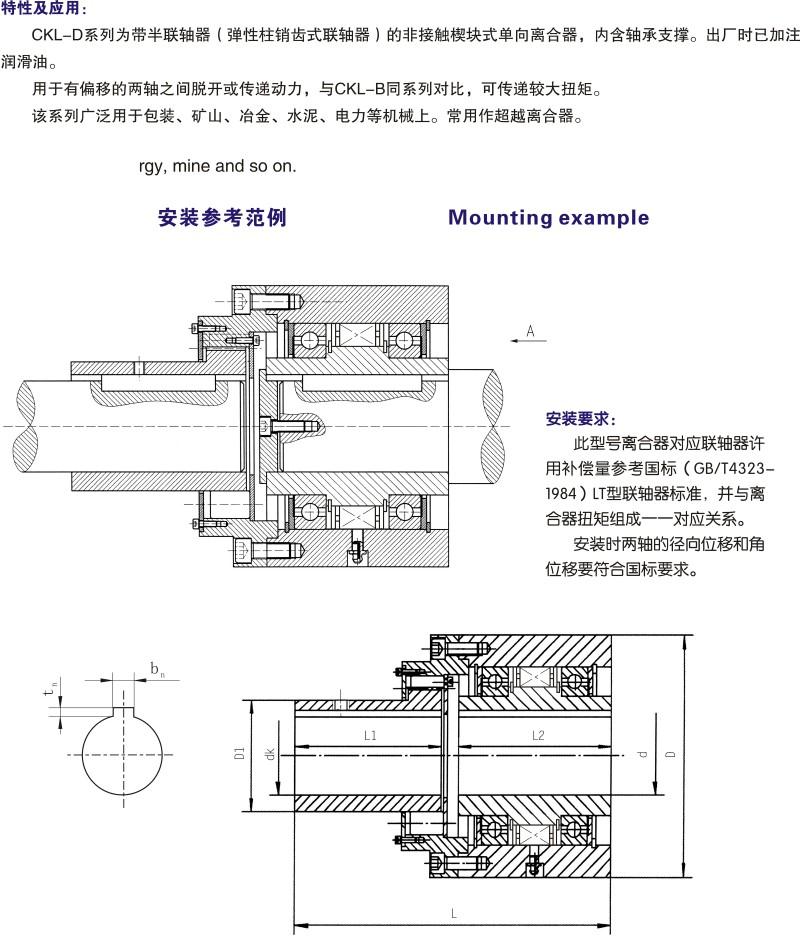 CKL-D為帶半聯軸器(彈性柱銷齒式聯軸器)的非接觸楔塊式單向離合器。