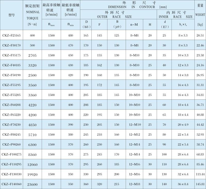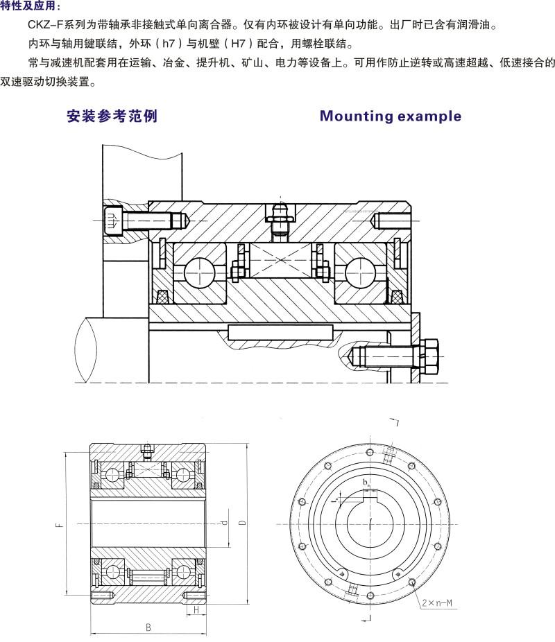 CKZ-F系列為帶軸承非接觸式單向離合器
