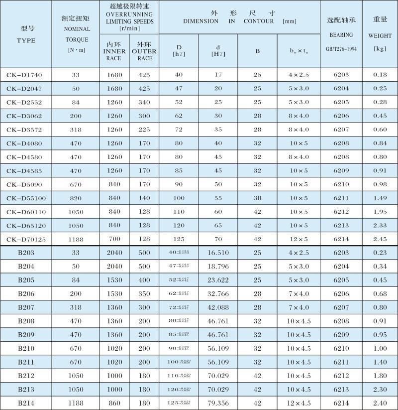 CK-D、B200 楔塊式單向離合器