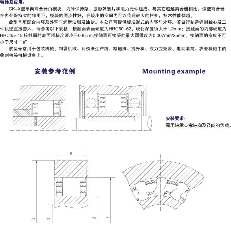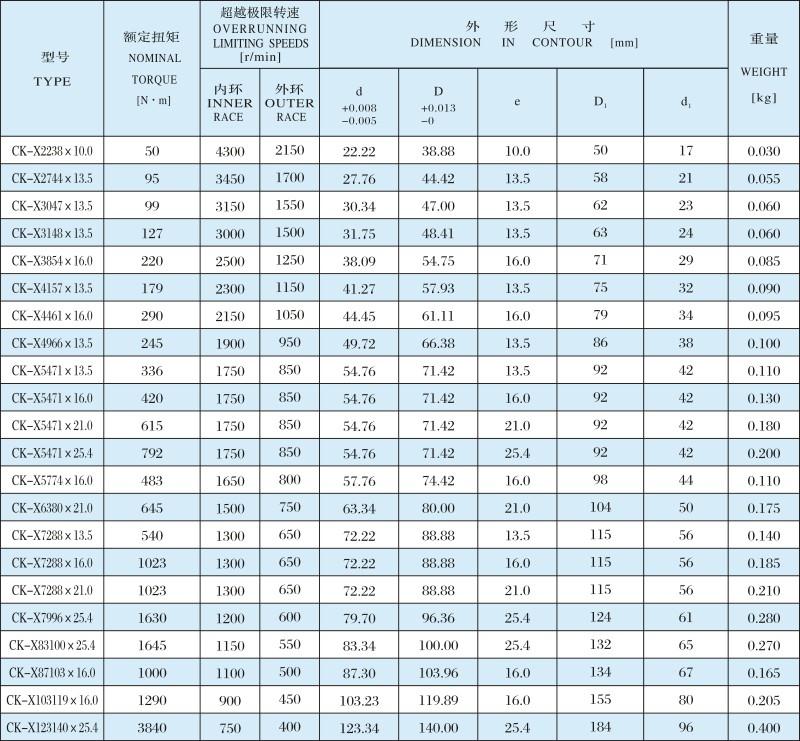 CK-X型單向離合器由楔塊、內外保持架、波形彈簧片和阻力元件組成。