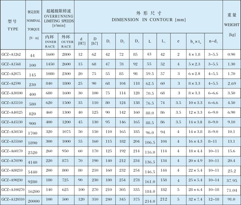 GCZ-A系列為滾柱式單向離合器