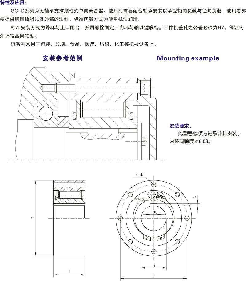 GC-D系列為無軸承支撐滾柱式單向離合器