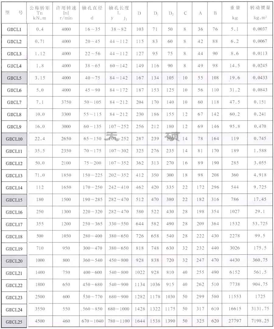 4. 鼓形齒聯軸器軸孔型式采用Y、Z1和J1組合,滿足多種軸孔連接需要。 鼓形齒聯軸器產品包括GICL、GⅡCL,GICLZ,GⅡCLZ和NGCL五種型式鼓形齒聯軸器