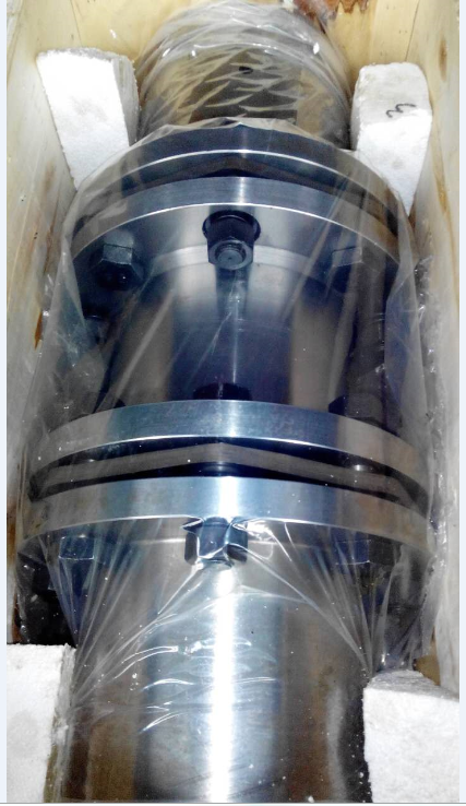 (二)安裝注意事項:把螺栓從法蘭盤小孔外側穿入,再穿入膜片孔中(注意膜片的方向,膜片是由許多單個薄片由鉚釘和鉚釘墊圈,鉚釘墊圈處應與緩沖套相接觸,否則會影響 鉚釘組的使用壽命),再從另件法蘭盤大孔外側穿入套上緩沖套,彈性墊圈,擰上螺母緊固時要注意使螺栓不要轉動,安裝螺栓時一定要注意螺栓方向,不要隨意安 裝螺栓方向,否則會造成膜片扭曲,長期運轉會使膜片和螺栓配合段表面、半軸節小孔處的損壞。因為螺栓與法蘭盤配合段表面是傳遞轉矩非常重要的配合段,表面 完好性直接影響使用性能。
