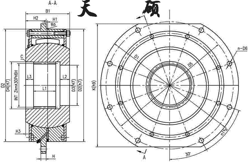 WZL內花鍵卷筒聯軸器主要參數及尺寸: mm